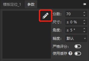 分?jǐn)?shù):對(duì)匹配到的模板相似度進(jìn)行評(píng)判,分?jǐn)?shù)越高,匹配相似度的要求越高; 尺寸:可匹配的模板尺寸范圍,例如±50%,就是模板的50%~150%大小范圍內(nèi)進(jìn)行匹配; 角度:可匹配的模板角度范圍,例如±180°,就是360°任意方向進(jìn)行匹配;; 精度:根據(jù)精度及速度的要求,用戶可以選擇從粗略到高的五個(gè)等級(jí); 嚴(yán)格評(píng)分:是否對(duì)在評(píng)分中考慮丟失、遮擋或模糊的特征; 使用緩存:加速算法的執(zhí)行速度,但是會(huì)占用額外的內(nèi)存; 全圖檢測(cè):用戶點(diǎn)擊如下圖所示的中ROI最大化按鈕即可。