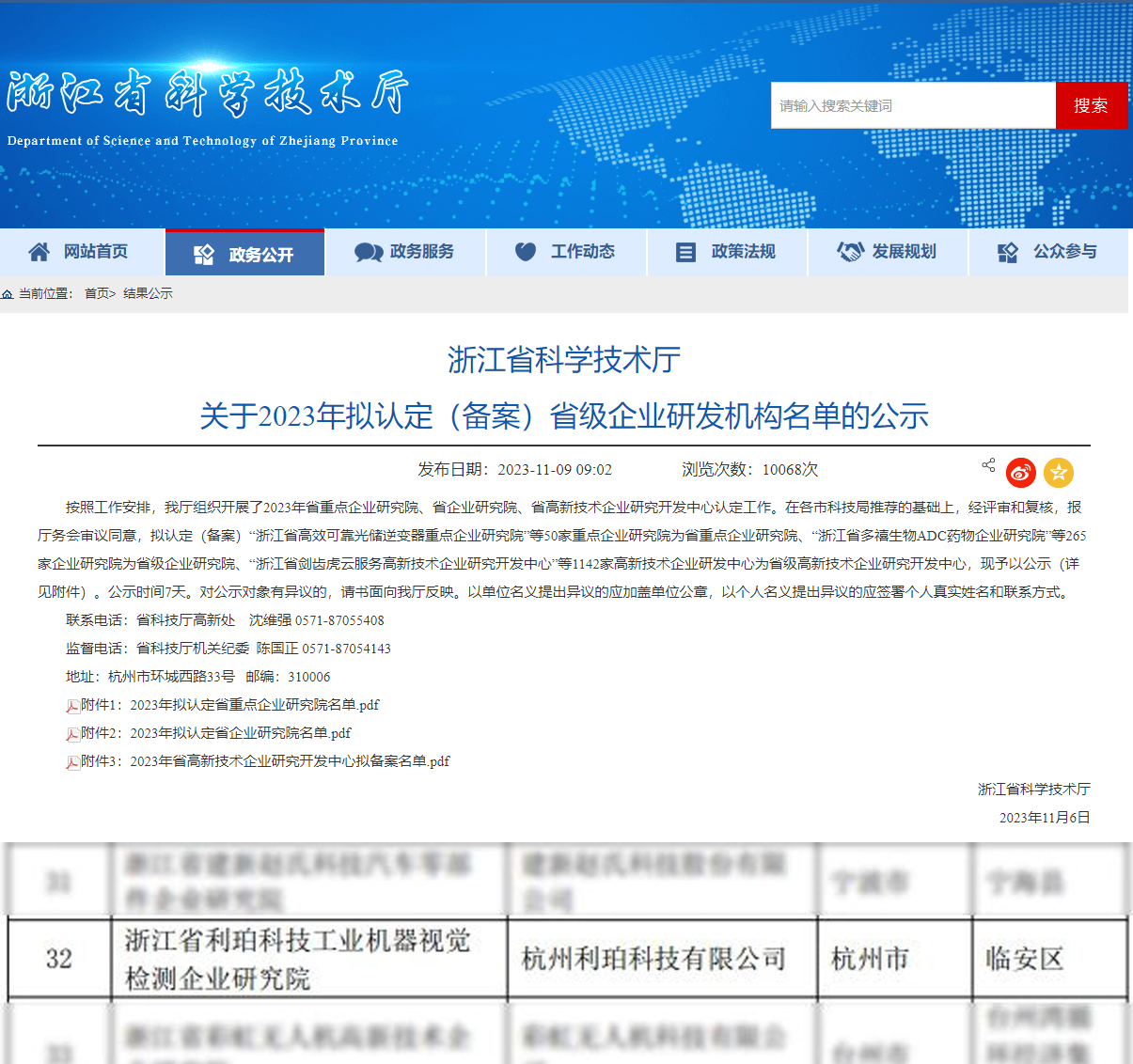 “科技賦能產(chǎn)業(yè),創(chuàng)新引領(lǐng)發(fā)展” 11月16日,浙江省科學(xué)技術(shù)廳公布了2023年新認(rèn)定省級企業(yè)研究院公示名單。憑借著卓越的企業(yè)自主創(chuàng)新能力和競爭力,我司申請的“浙江省利珀科技工業(yè)機器視覺檢測企業(yè)研究院”成功獲批。