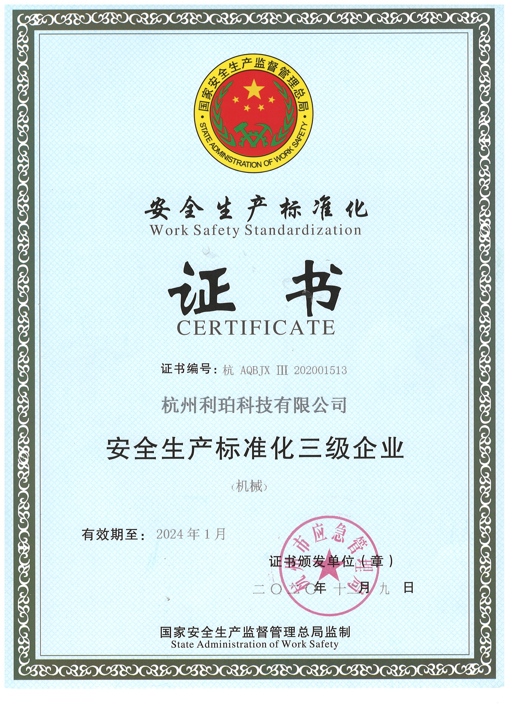 安全生產(chǎn)標(biāo)準(zhǔn)化證書(shū)