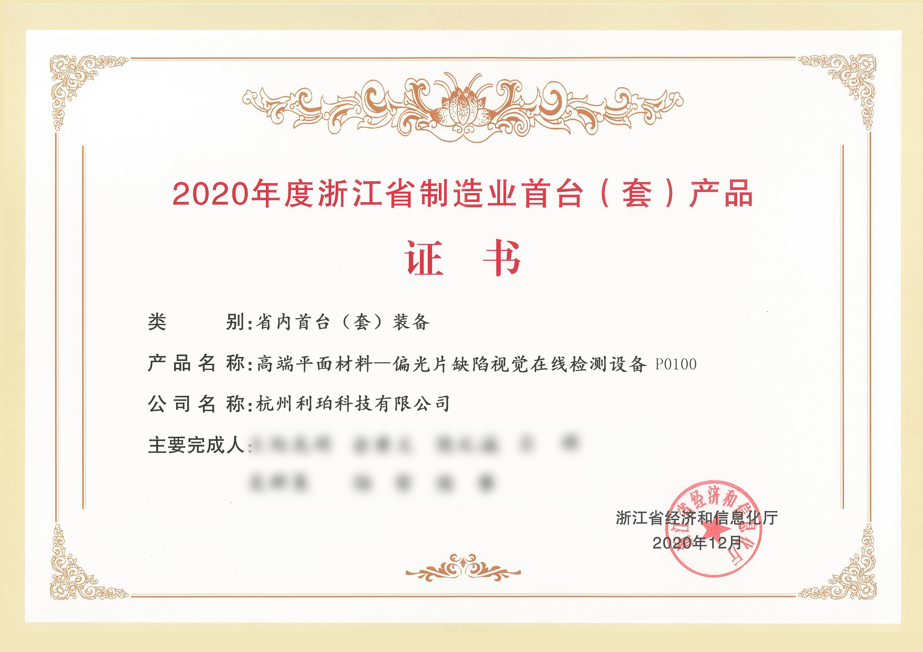 2020年度浙江省制造業(yè)首臺(tái)(套)產(chǎn)品證書(shū)-省內(nèi)首臺(tái)套裝備...