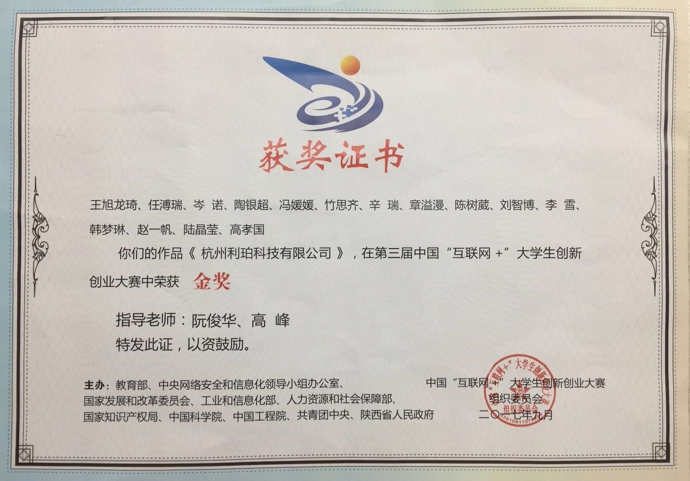 中國“互聯(lián)網(wǎng)+”大學生創(chuàng)新創(chuàng)業(yè)大賽金獎