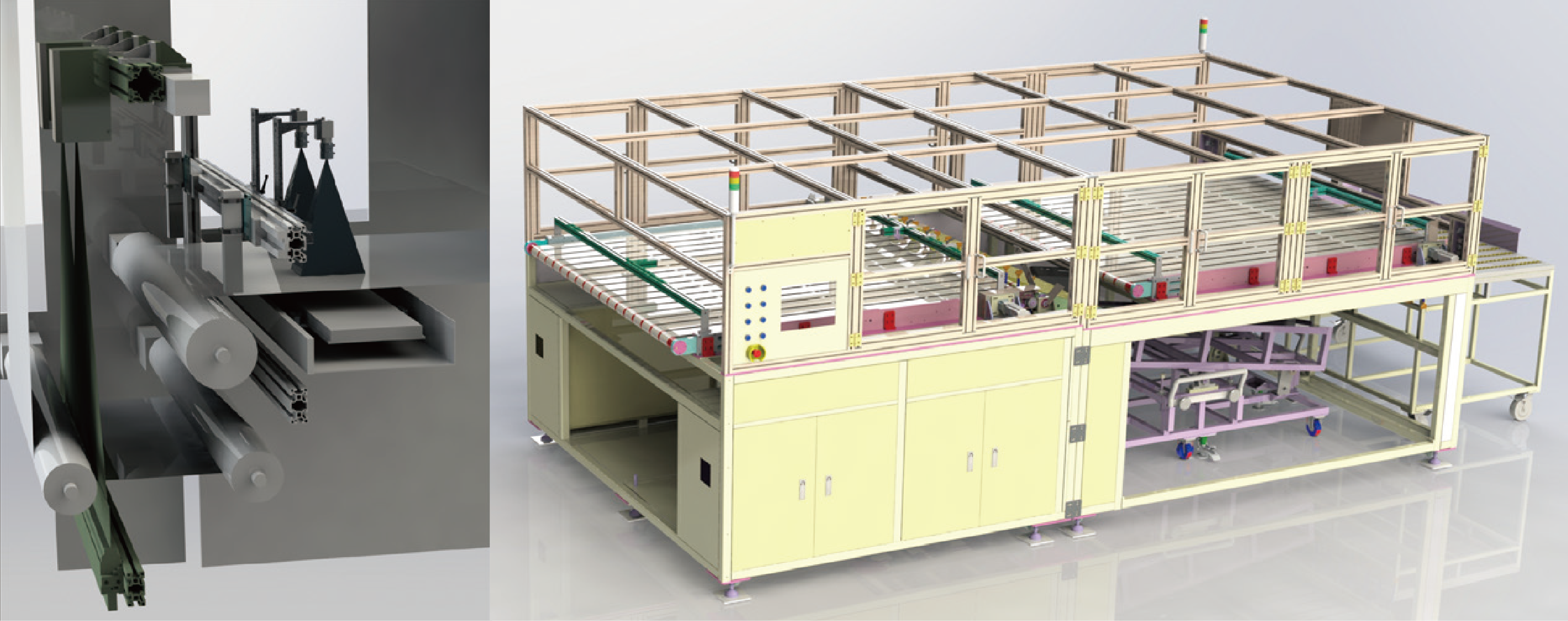 該設(shè)備對接RTS裁切機(jī),將AOI安裝于裁切機(jī)上,分揀機(jī)安裝于裁切機(jī)后段;可對帶缺陷Marking的卷材進(jìn)行檢測,對裁切后的片材進(jìn)行精準(zhǔn)的OK/NG分類,并進(jìn)行收料。