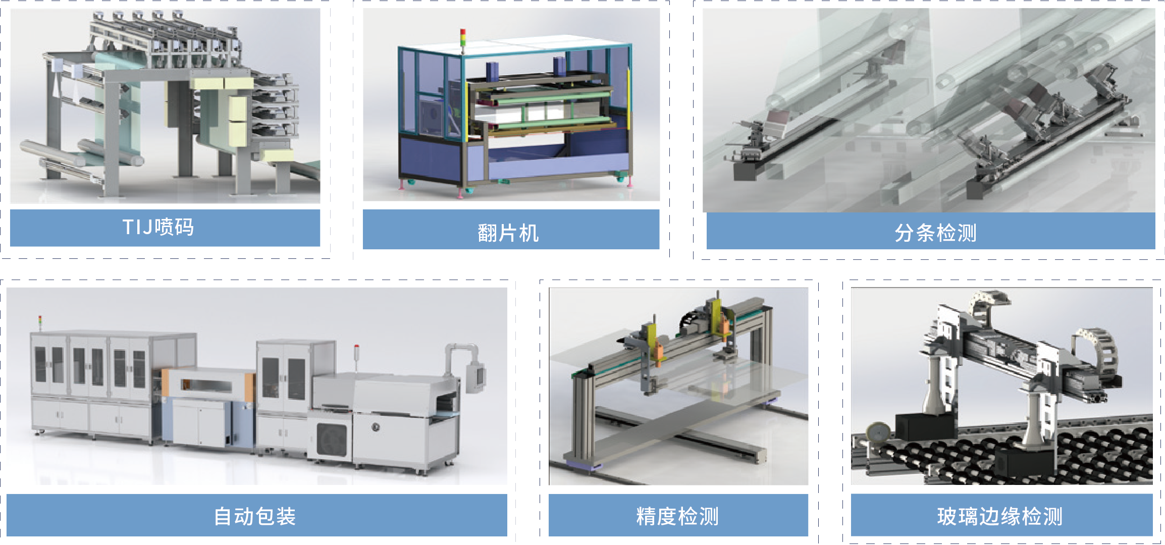 TIJ噴碼、翻片機(jī)、分條檢測、自動包裝、精度檢測、玻璃邊緣檢測