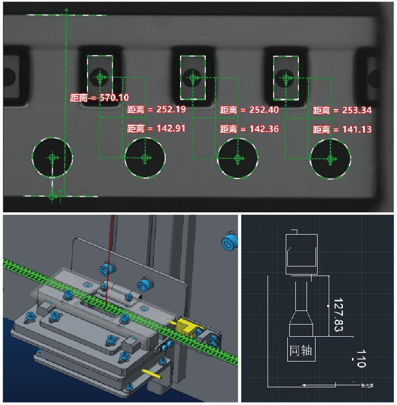 意義: 用高速高精度的視覺(jué)在線檢測(cè)代替耗時(shí)耗力的二次元離線檢測(cè)設(shè)備。精度±0.01mm,載帶運(yùn)動(dòng)速度13.4m/s