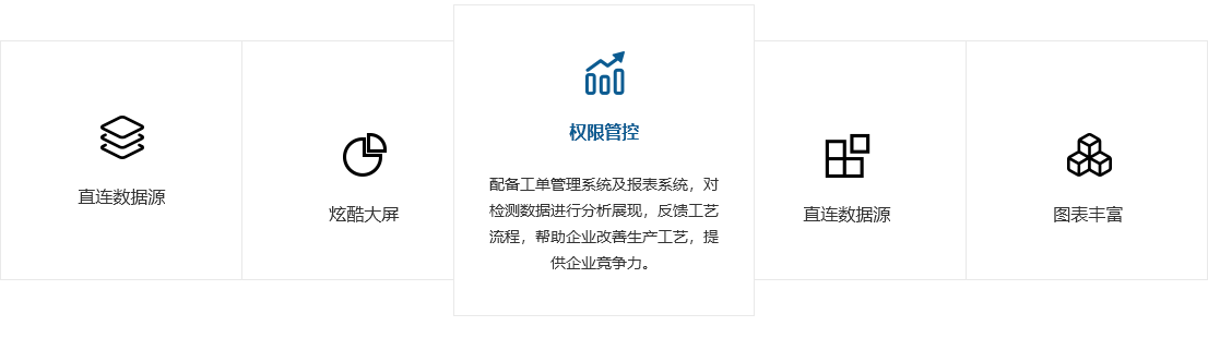 • 報(bào)表分析,反饋工藝流程:配備工單管理系統(tǒng)及報(bào)表系統(tǒng),對(duì)檢測(cè)數(shù)據(jù)進(jìn)行分析展現(xiàn),反饋工藝流程,幫助企業(yè)改善生產(chǎn)工藝,提供企業(yè)競(jìng)爭(zhēng)力。